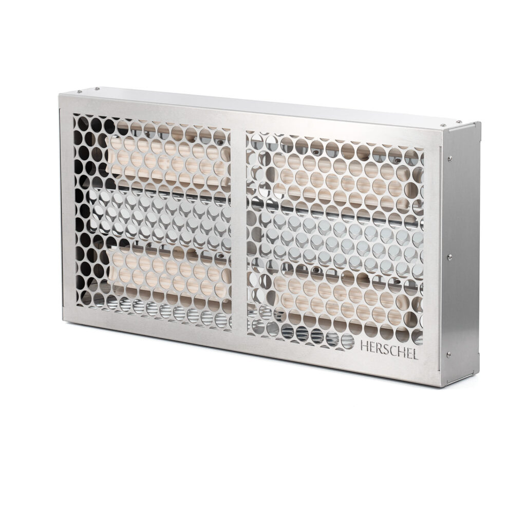 The Herschel Power industrial heater range provides a zero light infrared heating solution designed to heat large spaces such as warehouses, factories, sports halls, workshops and other commercial spaces. Designed and manufactured by Herschel in the UK and constructed from aluminium, the Power industrial workshop heater can be used to heat entire buildings or zones within large spaces. An ideal replacement to gas powered heating systems, the Power range is CO2 free when powered by renewable energy and can play a key part in delivering corporate net zero targets.